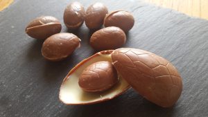 - Tempering af chokoladen: Før du bruger chokoladen i formen, er super vigtigt at den bliver tempereret. Du kan læse mere om det her